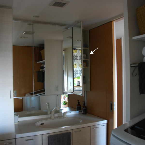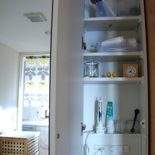 収納場所は洗面台の鏡の裏側です。