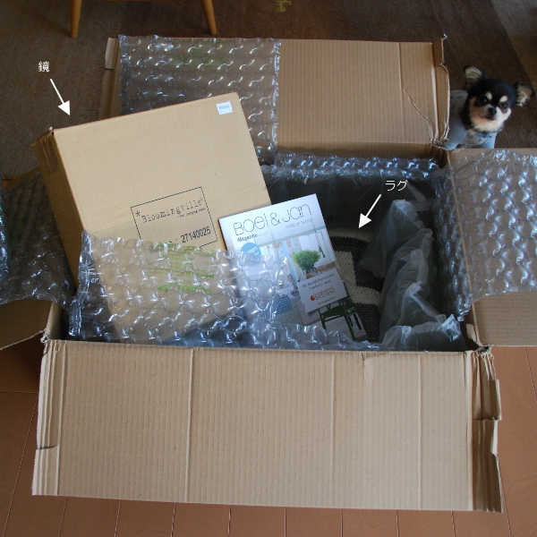 鏡はリビング用、プラスチックラグはグリーンコーナー用です。