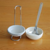 いままでは木製の鍋敷きとザルを並べていました。
