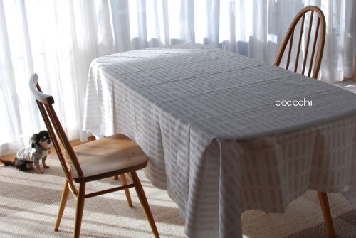 今年はテーブルが大きくなったので、テーブルクロスも大きいものを用意しようと思いつつ、柄や色をなかなか決められず、結局SIENA の白。