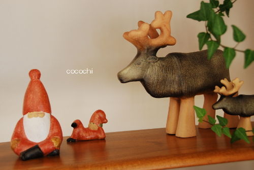 リビングの棚のサンタクロースとトムテの隣に置いてみたら、なんだか、菩提樹の下のブッタに見えてきた。