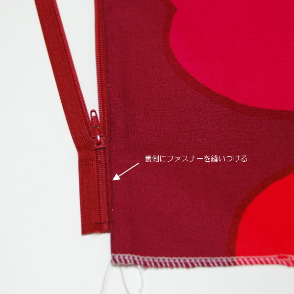 背面にファスナーを縫いつけた後、