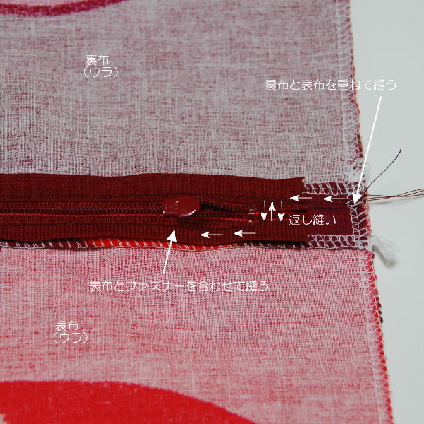 ファスナー端は返し縫い。