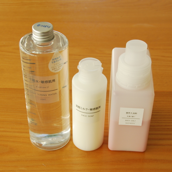 さっそく、バスソルトを使い、お風呂上りにはローションで腕や脚などにも保湿。