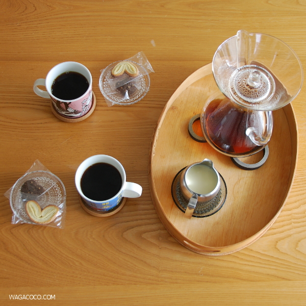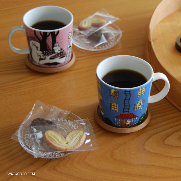マグカップ中のお菓子を取り出し、マグカップにはムーミンコーヒーを。