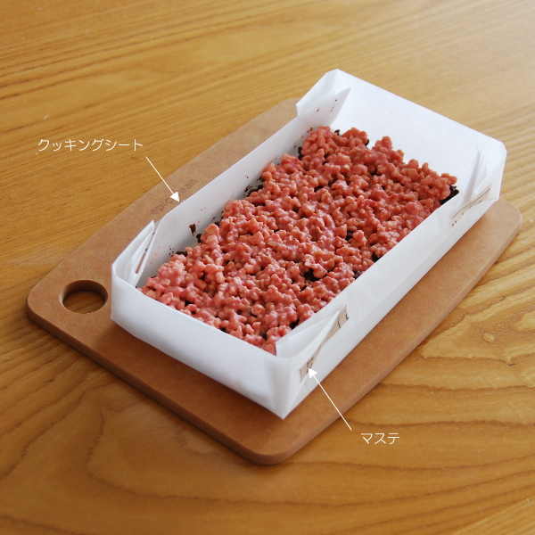 型は使わず、クッキングシートを折って、マステで留めた簡易トレーで作りました。