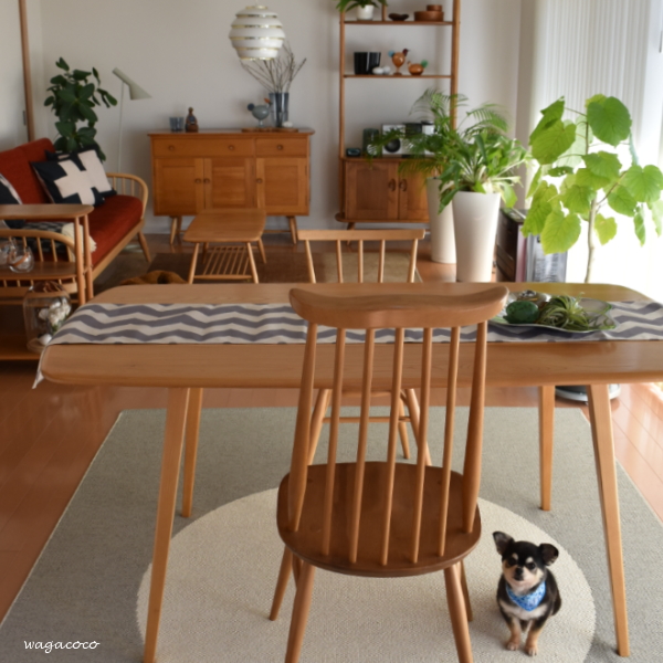 クッションカバーを掛け替え、明るい色のテーブルランナーを掛けて、ちょっぴり模様替え。