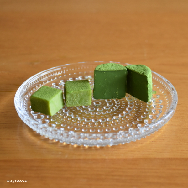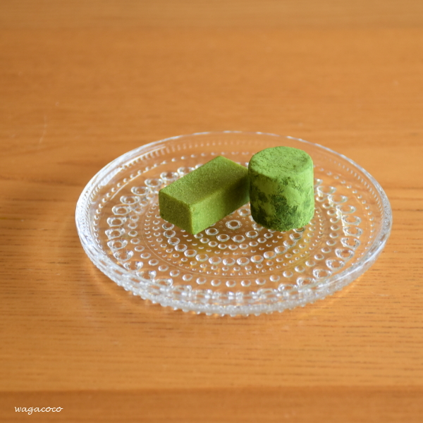 四角い左側が先日の記事でご紹介した【宇治抹茶生ちょこれーと】。