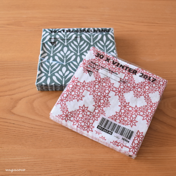 ペーパーナプキンはクリスマス柄も少し置いてありました。