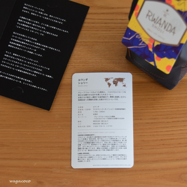 コーヒー豆の詳しいストーリーが書かれたカード付き。