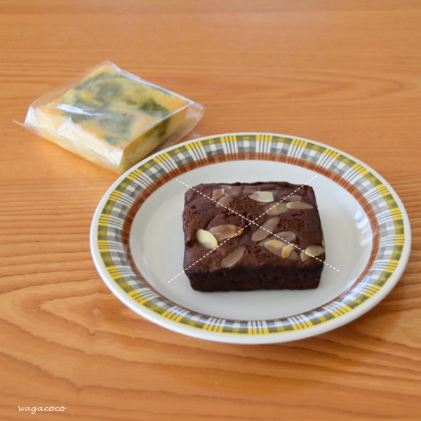 正方形の【ガトーショコラ】は四等分に切りました。