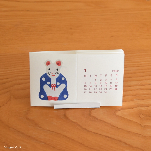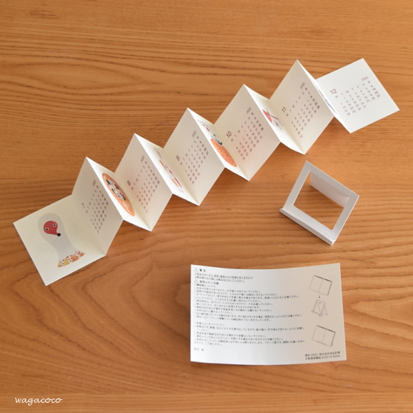 小さな蛇腹のカレンダー。