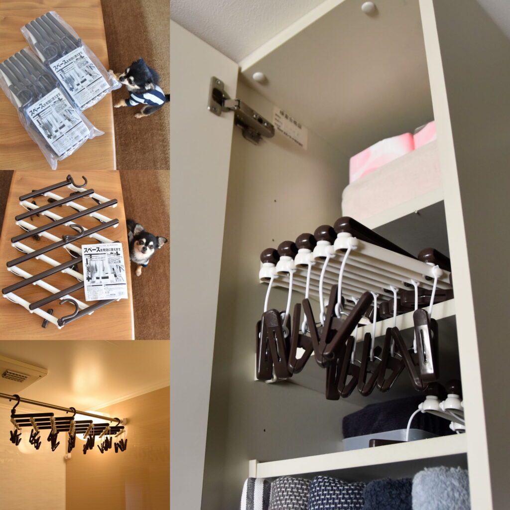 収納時にも便利ですし、干す場所に合わせてサイズを変えられるのも便利なのですよ。