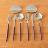 でも、ゴールドは温かみのある色味なので、ナチュラルな雰囲気との相性も良く、日常使いから特別な場面まで、幅広く使える万能なカトラリーでは?と思ってます。