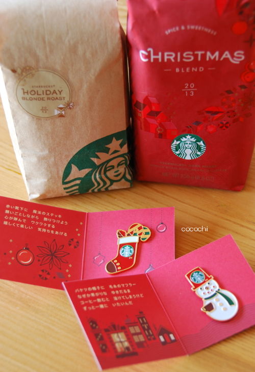 【スターバックス】クリスマスブレンドとホリデーブレンドとピンズ【 HOLIDAY 2013 】