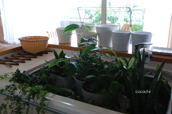 今年も新しい植物が増え、植物の数や種類が増えるのに合わせ、日々のお手入れ方法も変わっています。大きな鉢植えはベランダに出して水やり。小さな鉢植えはキッチンで水やり。ティランジアやコウモリランは洗面台でソーキング。数が多いと、お手入れも大変ですが、お手入れ後の元気な姿がモチベーションになります。