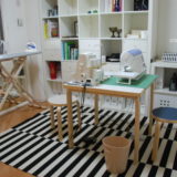 スコープさんの再販で購入したサイドバイサイドのアイロン台が届きました。広い作業面も高さが調節できる脚もとても便利。綺麗に組み合わさった木の脚は美しく、まさに一生もののアイロン台。さっそく、模様替えを進めてきたワークルームで使ってみました。