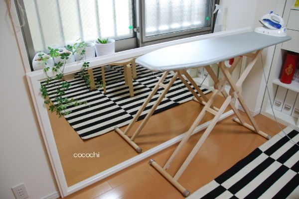 サイドバイサイドのアイロン台はワークルームの窓際に広げて使います。