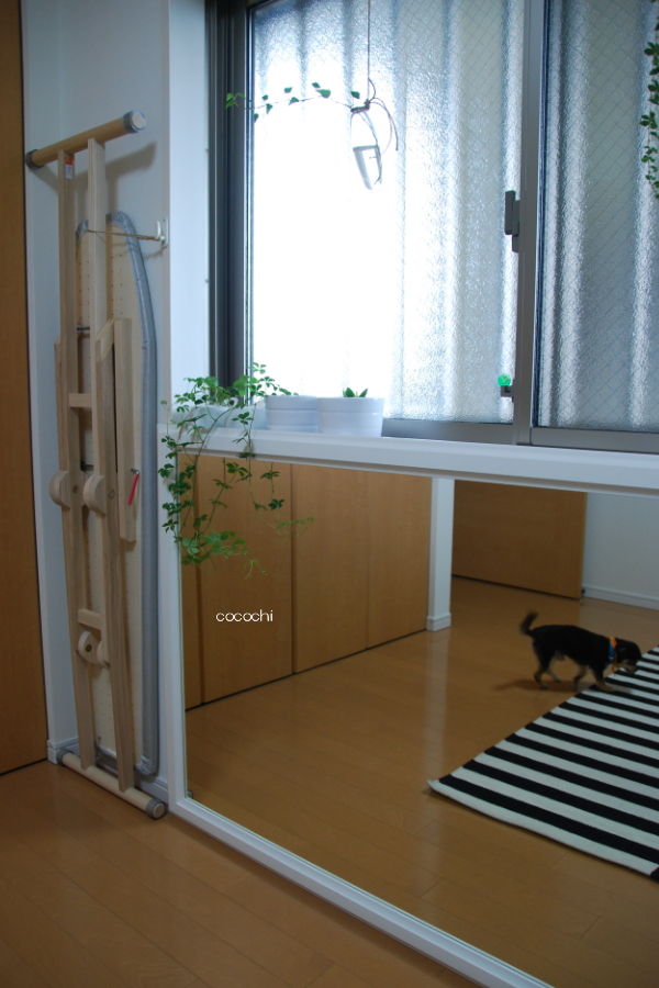 玄関に立てていた鏡を横向きに置いてみました。