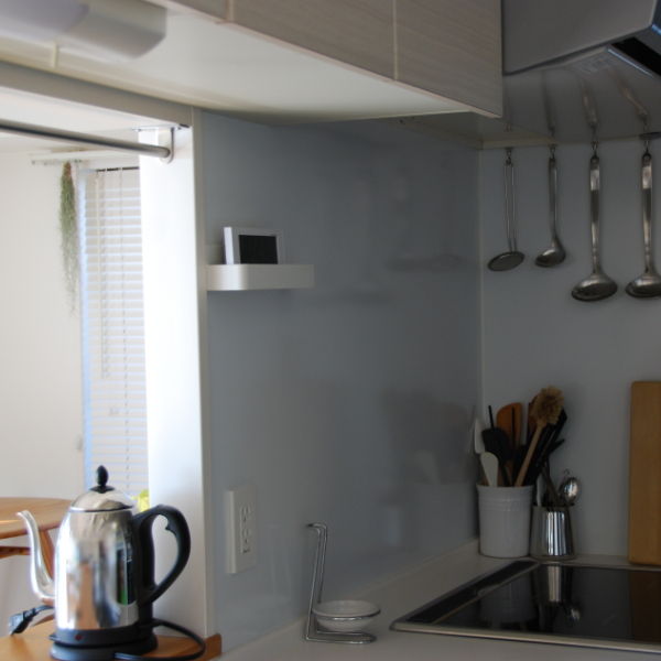キッチンで作業をするとき、カウンターの上にデジタル時計を置いていたのですが、マグネット付きのトレーを壁につけて、時計を置くことにしました。