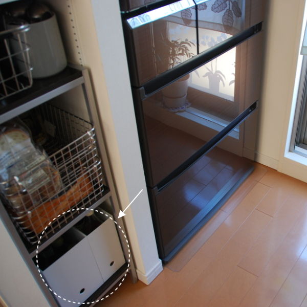 これまで冷蔵庫横で使っていたファイルボックスをシンク下で活用することにして、
