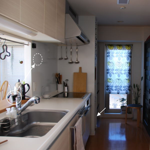 壁に付けてしまえば邪魔にならないし、リビング・ダイニングから見えないので!
