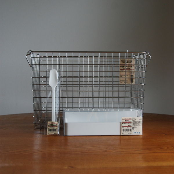 ワイヤーバスケットは冷蔵庫横の棚用。