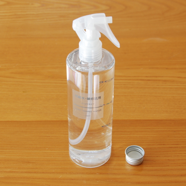 スプレーヘッドを取り付けたローションは乾燥を感じた時にシュシュッと吹きかけるのに便利で、腕や脚など、ボディケアにも便利です。