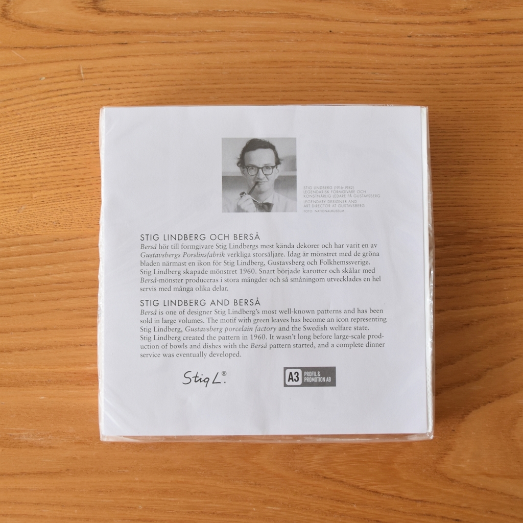 裏側にはスティグ・リンドベリの写真とベルサについての説明付き。