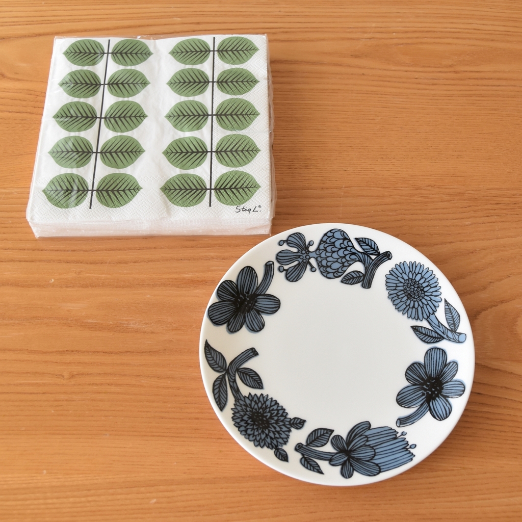 今回の楽天スーパーセールで購入したのは、スティグ・リンドベリのデザインのペーパーナプキンとグスタフスベリの復刻版18cmプレートです。