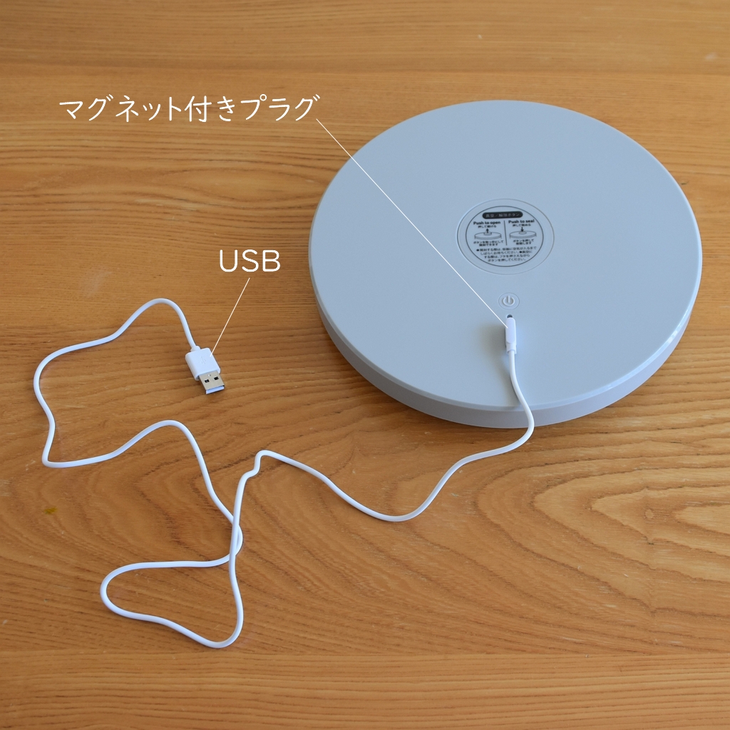フタにはリチウムイオン電池が内蔵されているので、付属の専用ケーブルで充電してから使います。