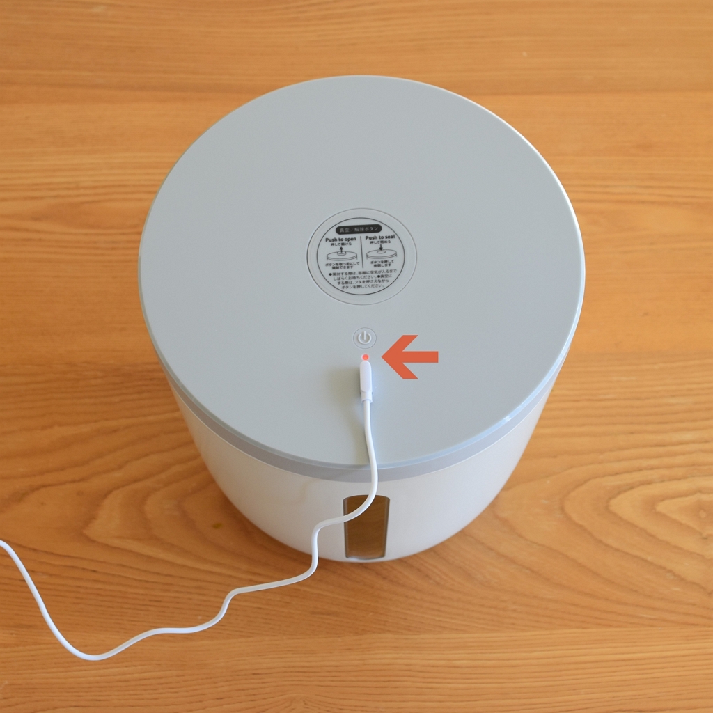 保存する物を容器に入れたらフタを閉め、【真空/解除ボタン】は解除の状態(押し上がった状態)で【電源ボタン】を押します。