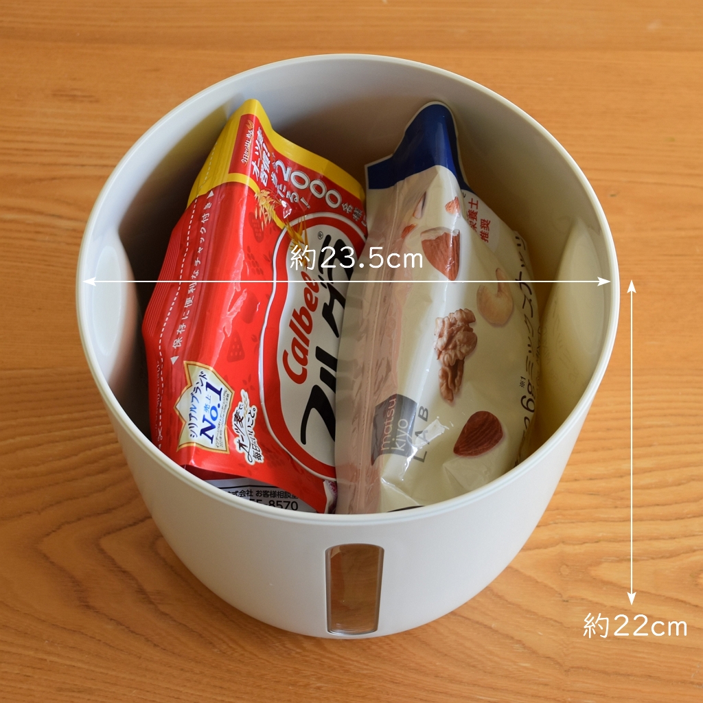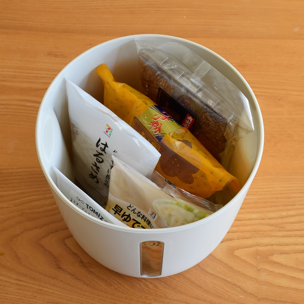 円形なので多少の収納の無駄はありますが、容量は十分です。