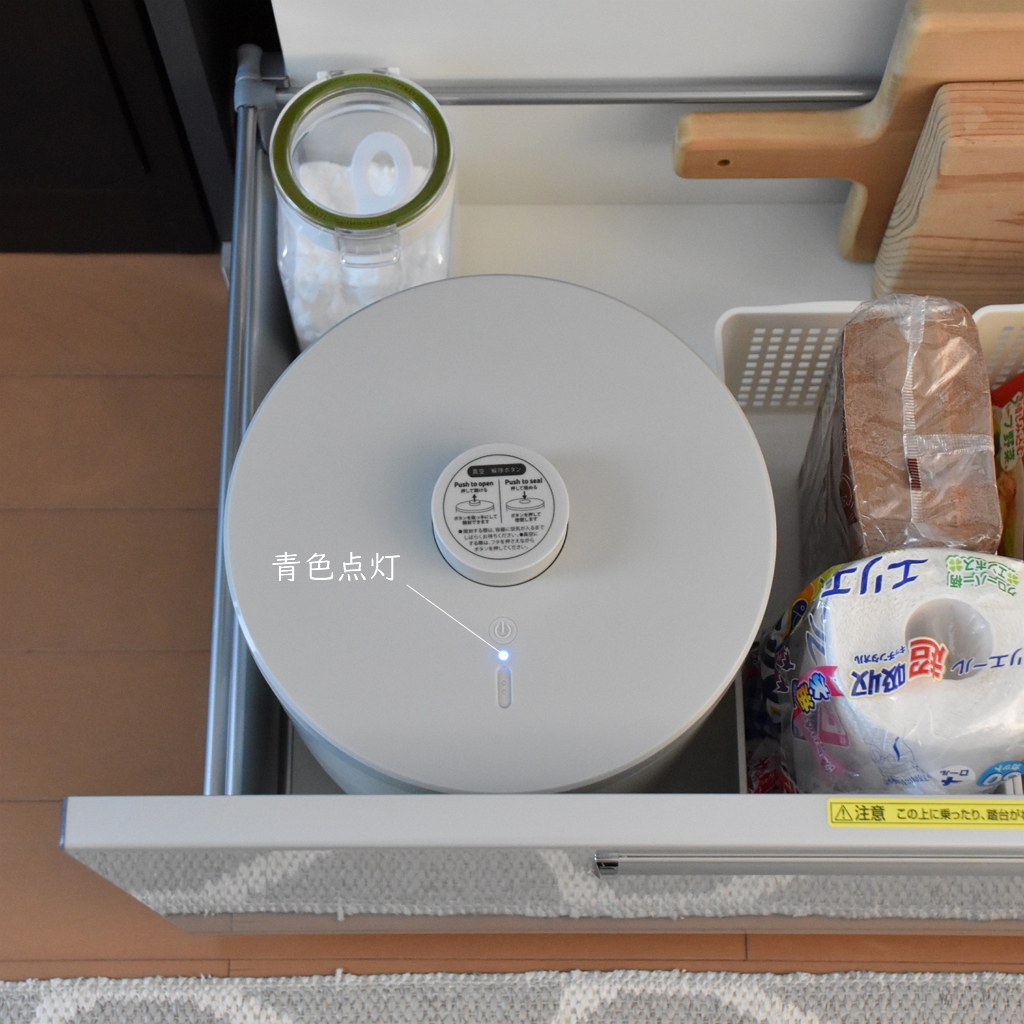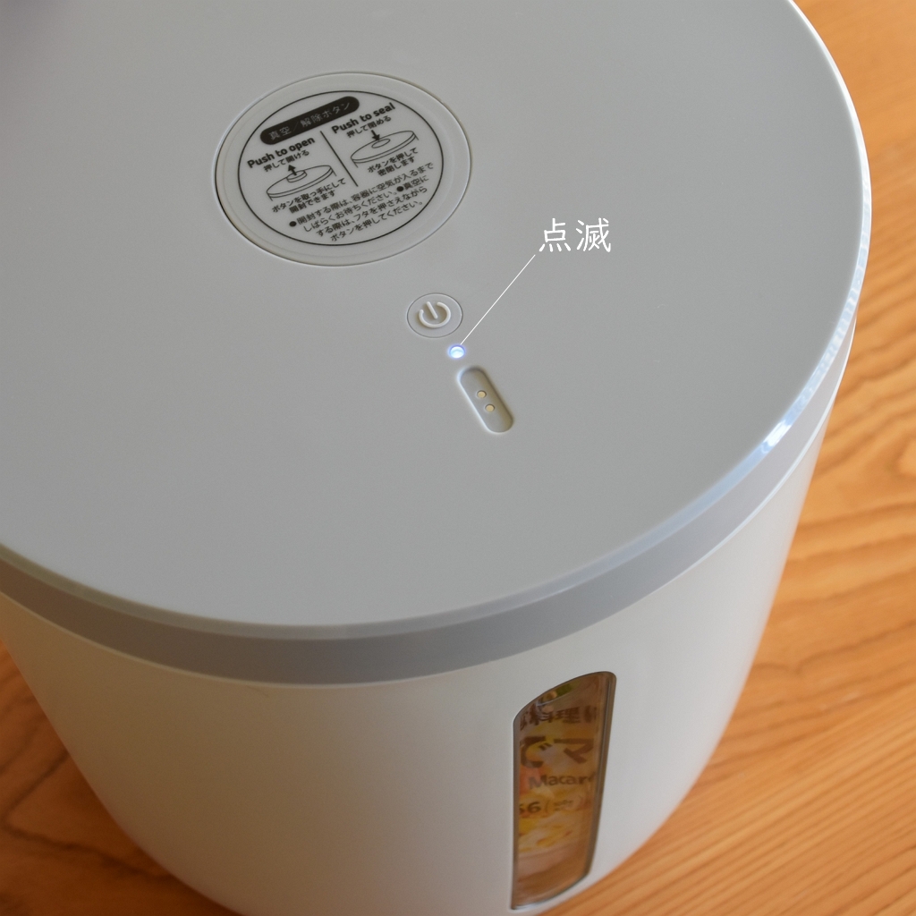 容器内を真空にしている間、空気を抜く音が「ブーー」と鳴り、白色ランプが点滅。