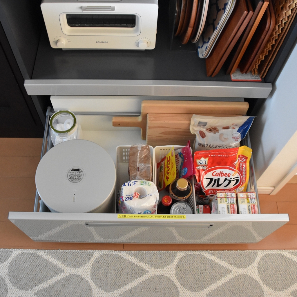 キッチンの引き出しの中にしっかり真空保存できるスペースができて、食材保存の安心感が増しました。