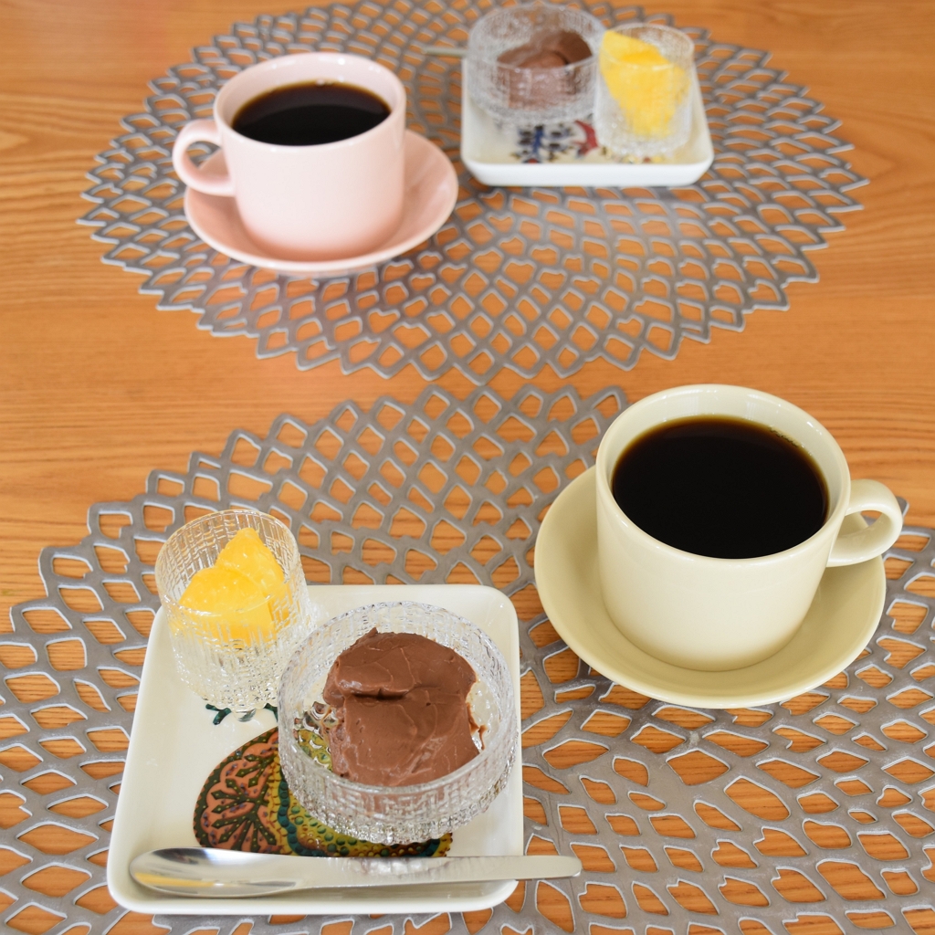 チョコレートとオレンジに好相性のコーヒーをティーマに注ぎ、タイカとウルティマツーレでプチスイーツセット。
