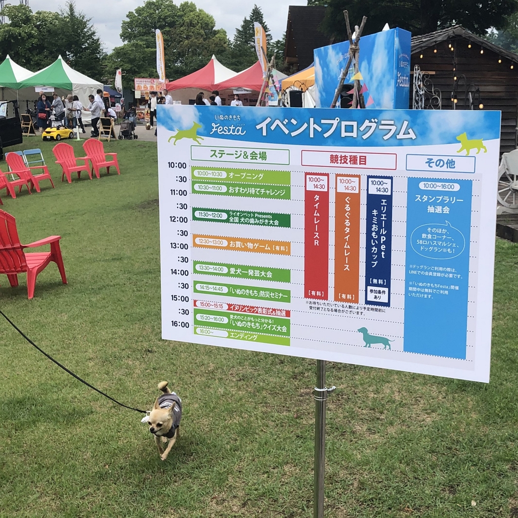 ステージイベントの他、タイムレースなどのイヌリンピック、協賛・出展ブース、スタンプラリーなどが行われていて、愛犬も飼い主も一緒に楽しめるイベント。