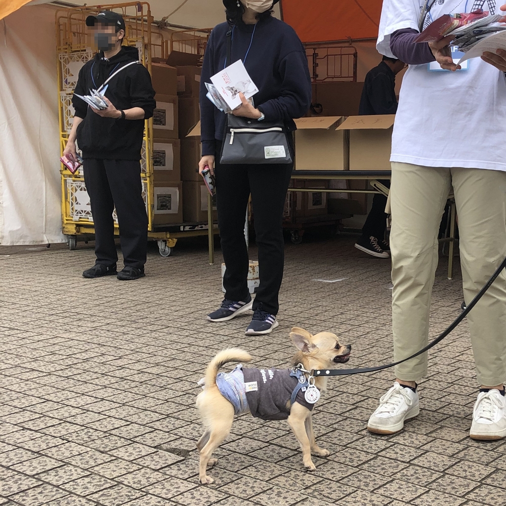 マナーウェアを着け、もんた初めてのわんこイベント参加です。