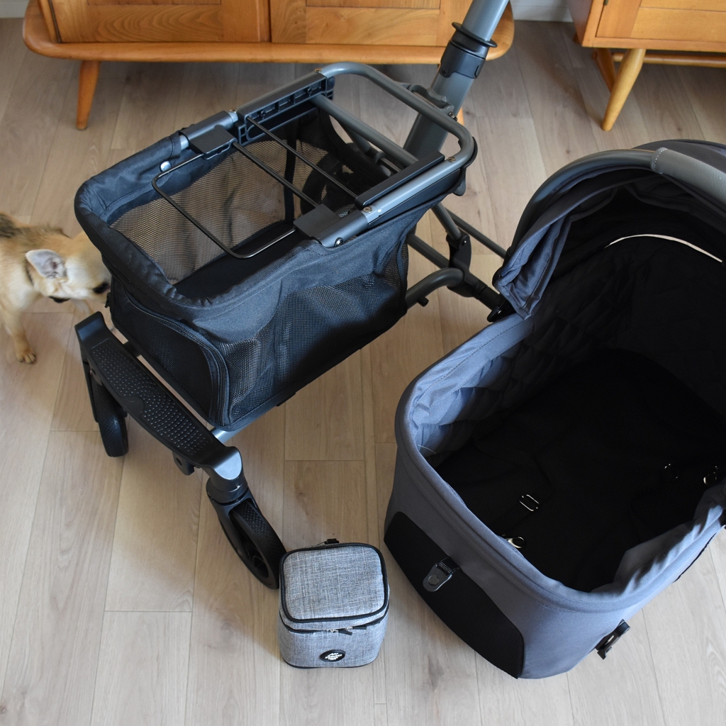 カートのハンドルに取り付けられるお散歩バッグも便利そう。