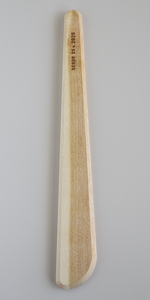 材質は山桜、片面に【SCOPE 25v. 2025】刻印。