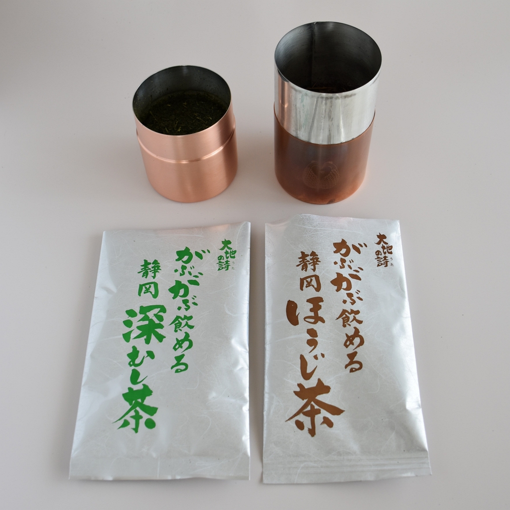 中身はそれぞれ、煎茶100gとほうじ茶50g。