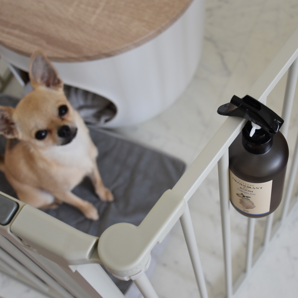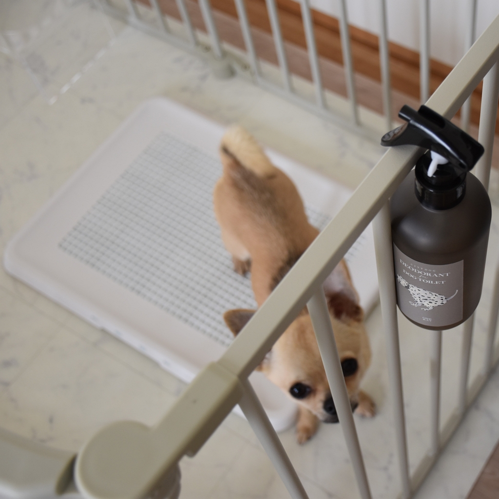 トイレの失敗が多かった子犬期も過ぎ、除菌消臭剤の大量消費もなくなり、実用性だけじゃなく、デザインも可愛い消臭剤に替えました。