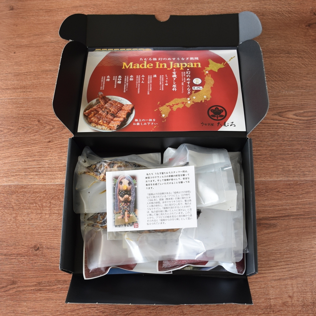 【うなぎ屋たむろ】さんの鰻をお試しさせていただくことになり、届いた箱には、なぜか鮎。