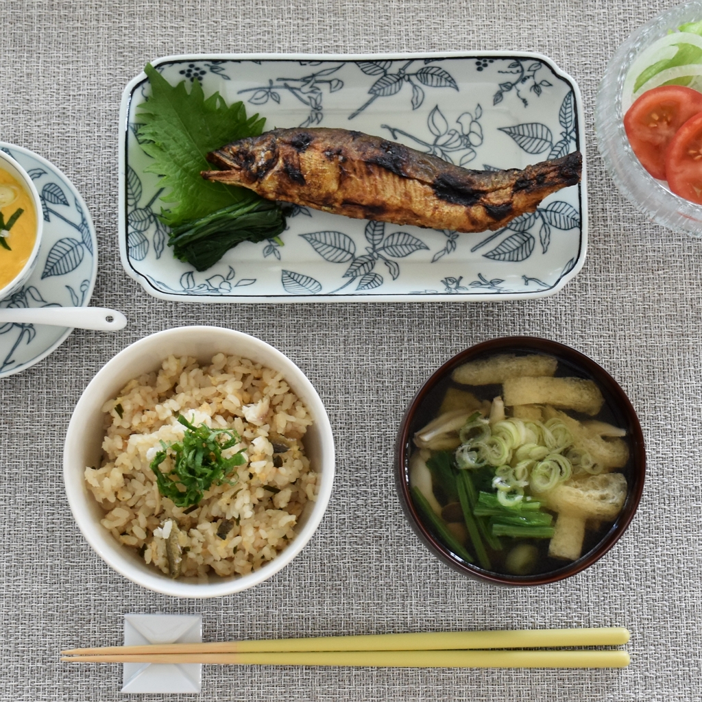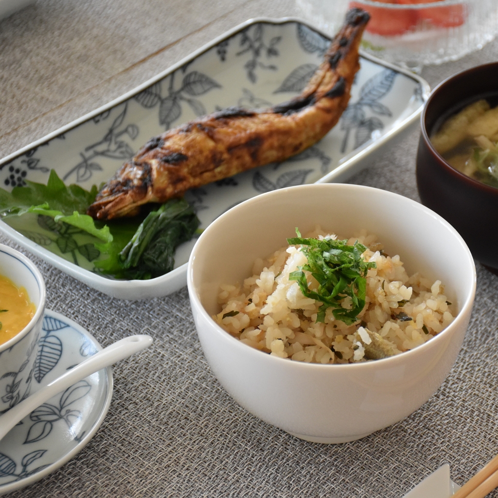 白米をかるく盛るだけの普段の食卓と違い、炊き込みご飯を盛ると大きなお茶碗の良さが引き立つ気がします。
