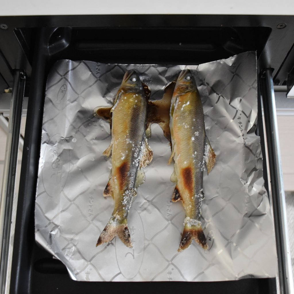 ちょっと小ぶりでしたが、魚焼きグリルで塩焼きに。