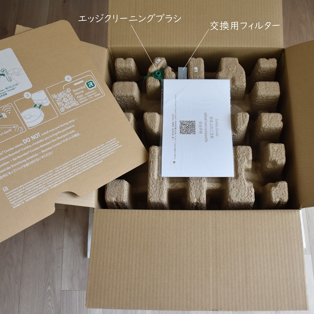 梱包材の下には本体(ロボット)と充電ステーション(AutoEmpty)。