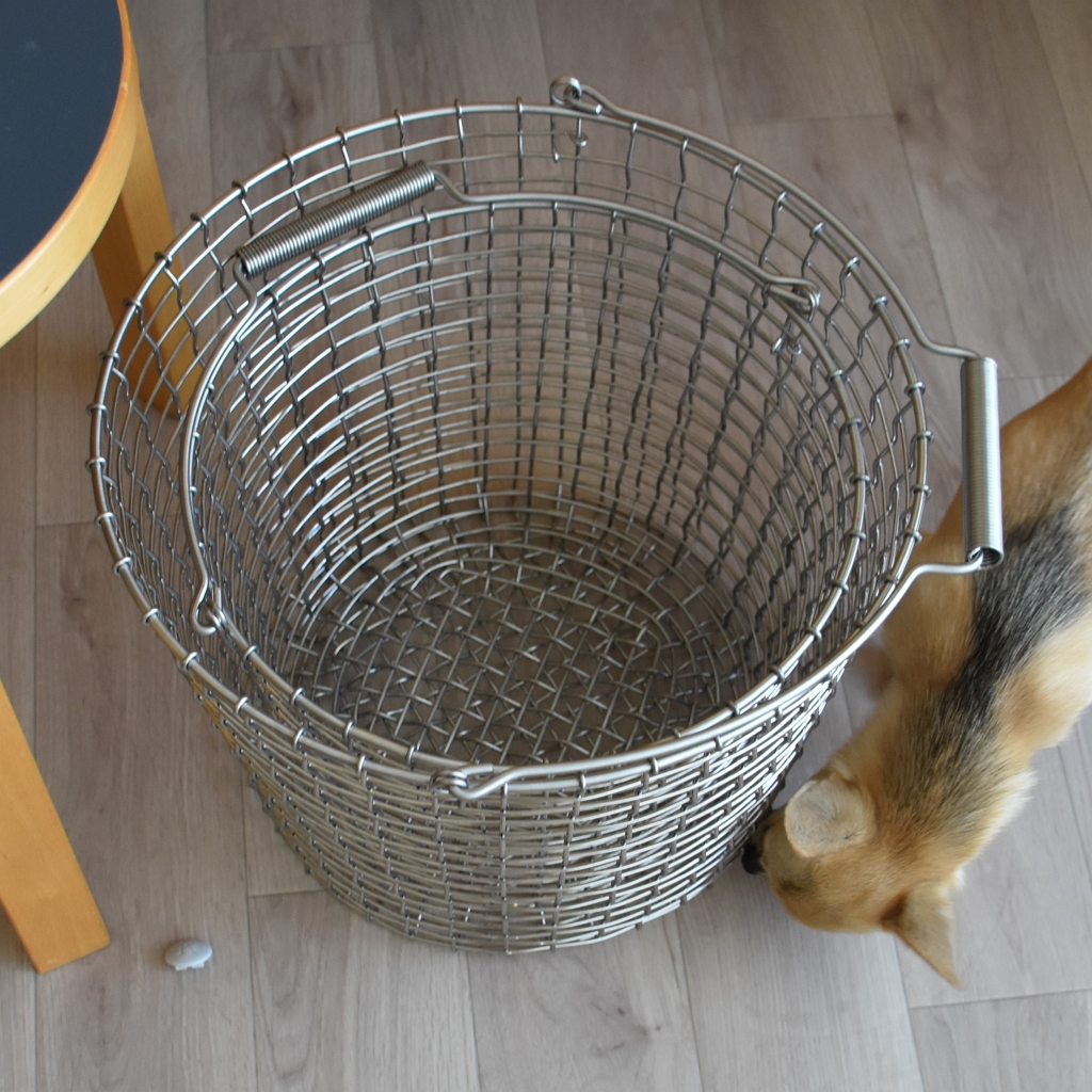 手編みで作られたハンドクラフトのステンレススチールのワイヤーバスケット。
