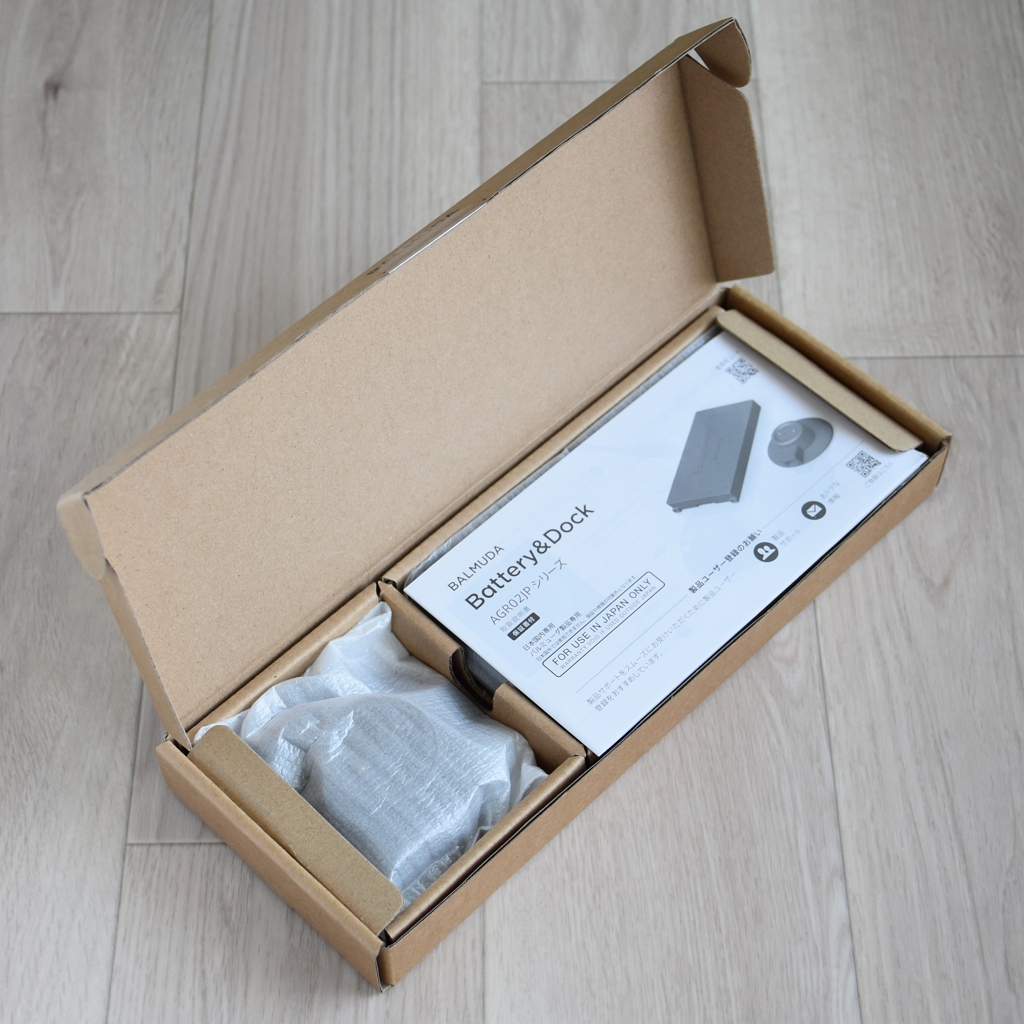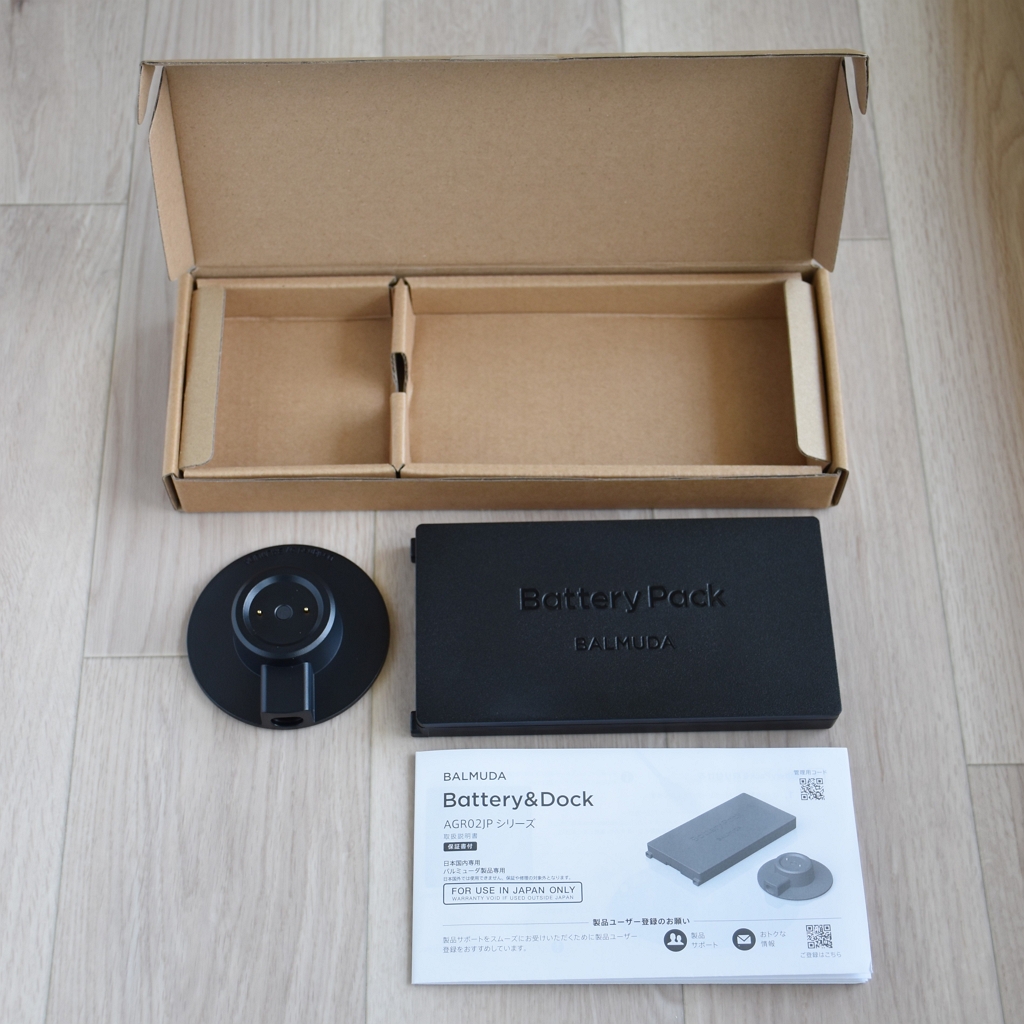 2025年4月にリニューアルされたバルミューダのバッテリー&ドック【BALMUDA Battery&Dock AGR02JP】。