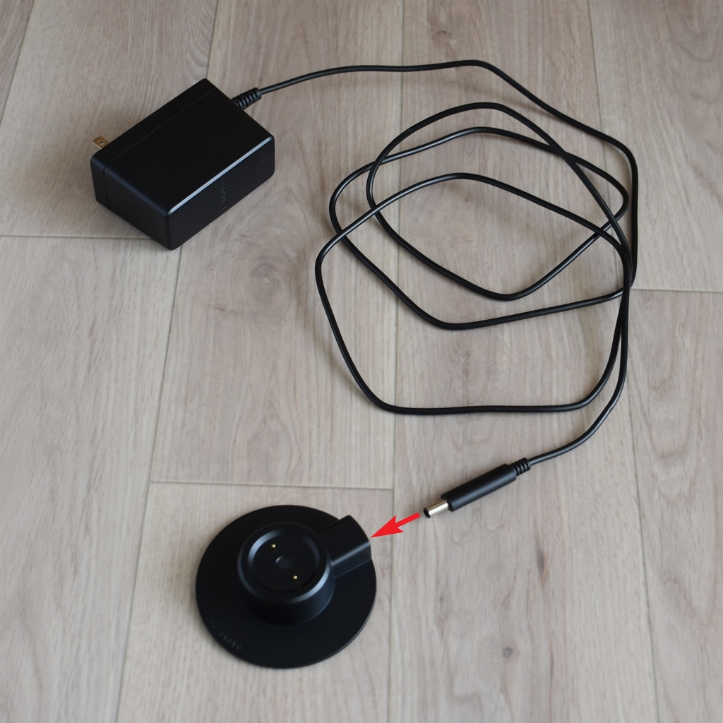 ACアダプターをコンセントに接続し、ベースの底面の凹みにドックを合わせて充電。