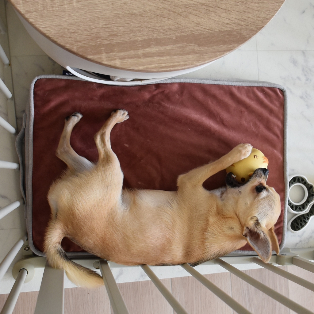 わんこは寝ている時間が長いから、身体に優しいクッションで快適に過ごしてほしいです。